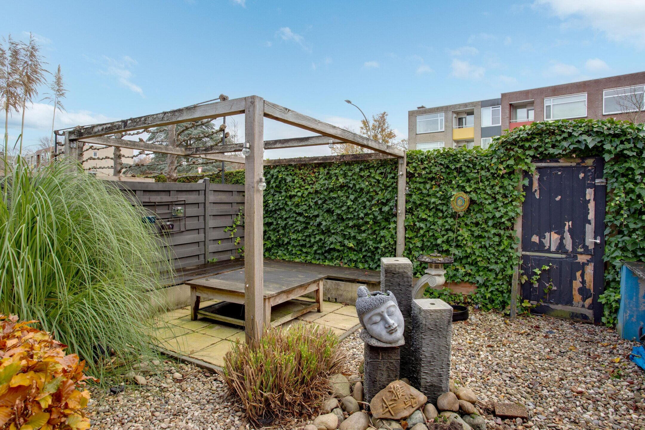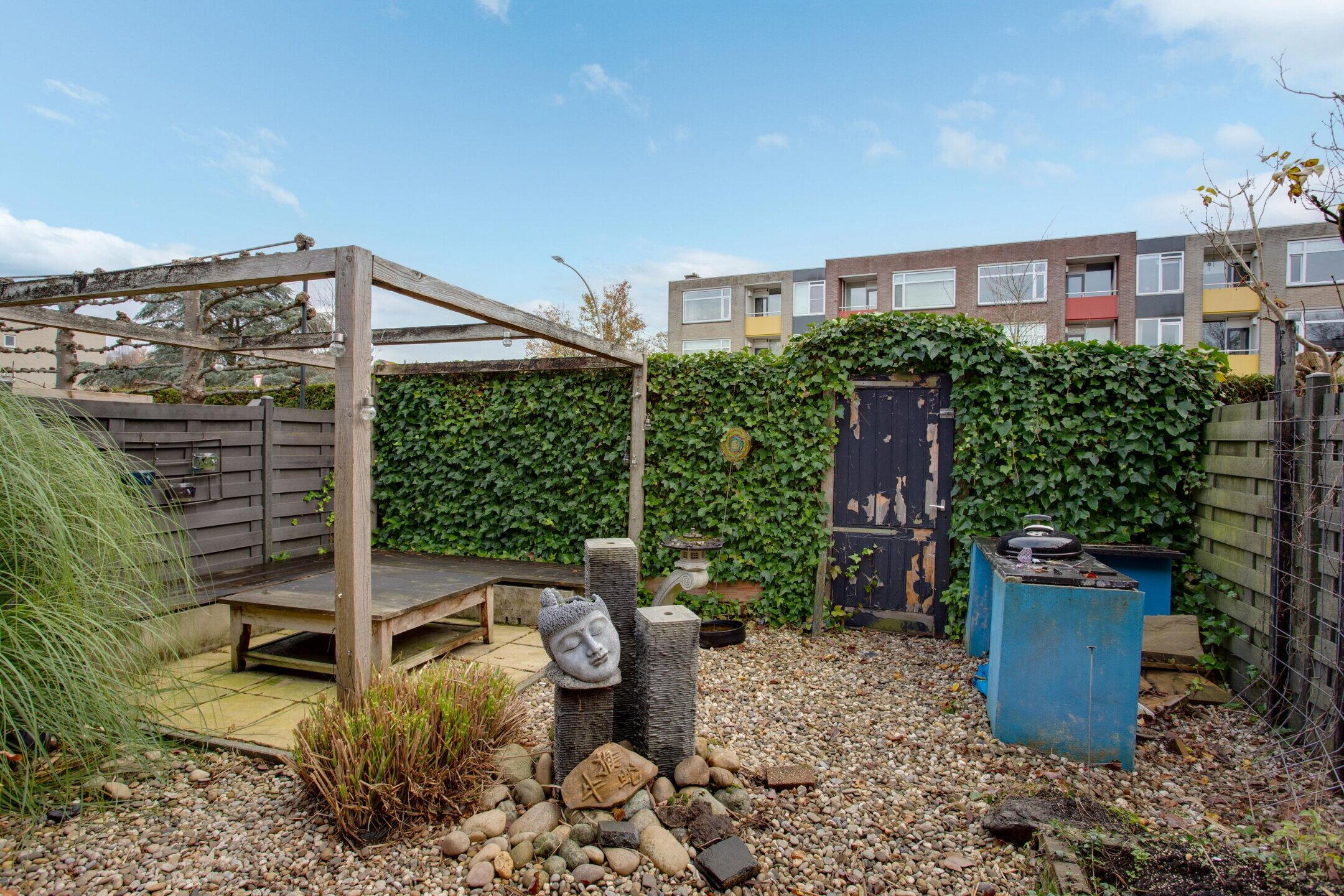 De achtertuin is heerlijk diep én voorzien van een overkapping over de volledige breedte van de woning. Hierdoor zit je het hele jaar door droog en beschut, perfect voor lange avonden buiten. De tuin zelf is verder volledig naar eigen smaak te moderniseren, een fijne basis waar je alle kanten mee op kunt.