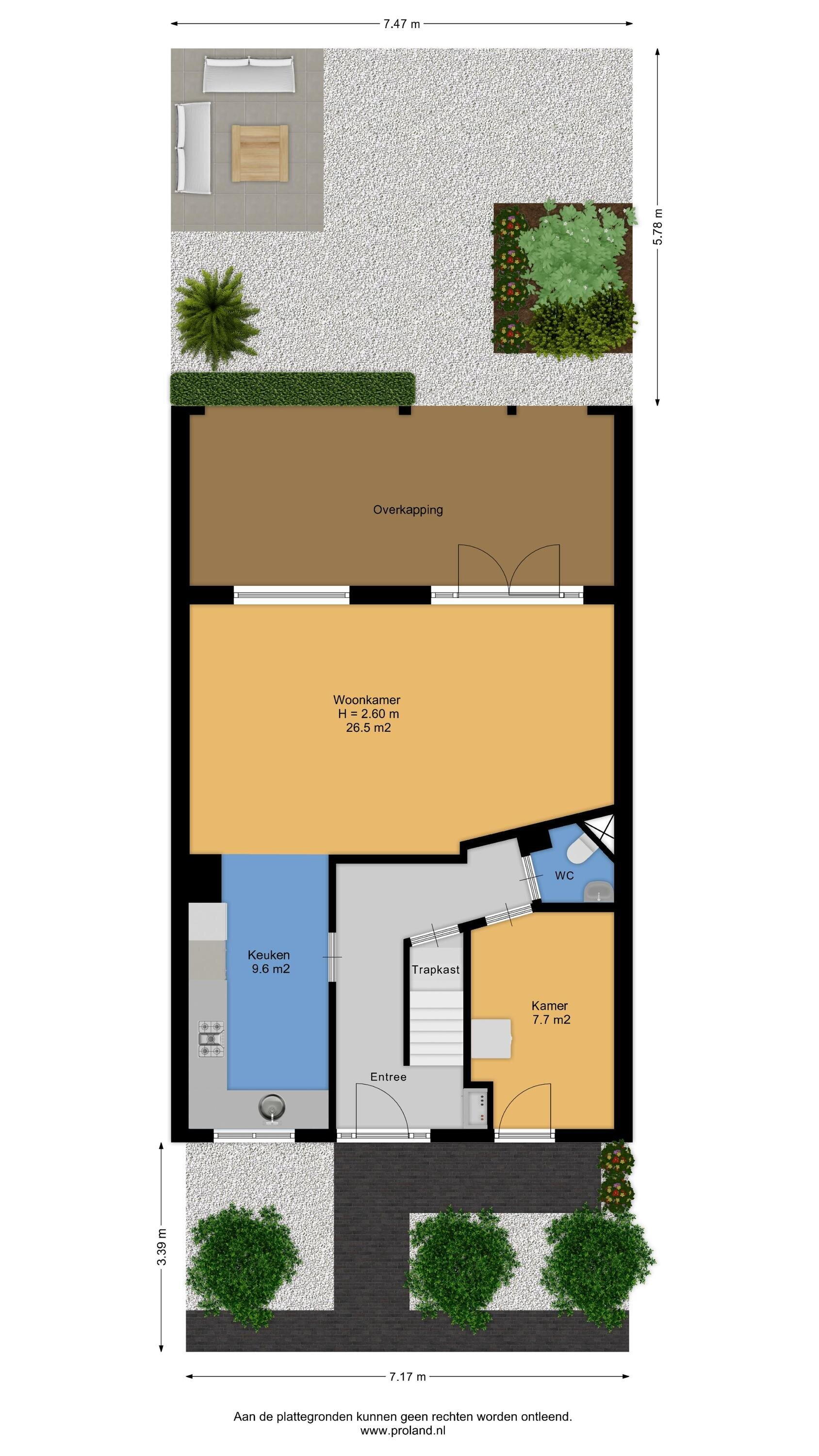 - 43 m² (5.78 meter diep en 7.47 meter breed)